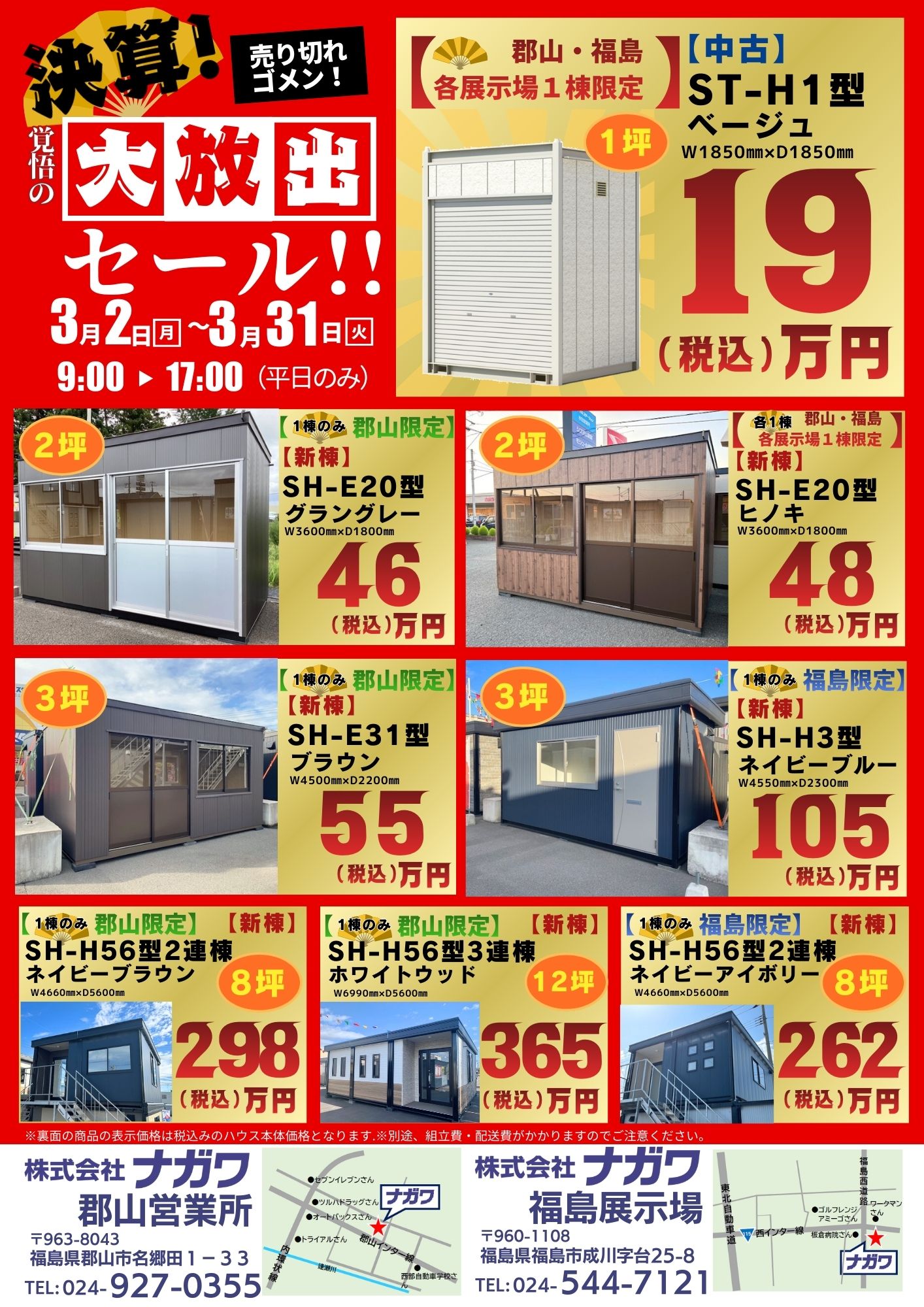 【郡山展示場】決算!覚悟の大放出セール! 3/2~3/31